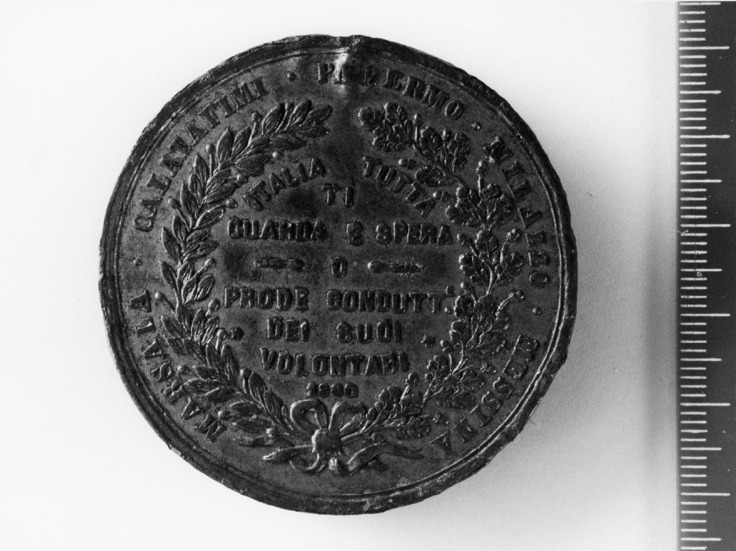 Dritto: Testa di Giuseppe Garibaldi a s. Rovescio: Entro corona d'alloro e quercia con nastro legenda