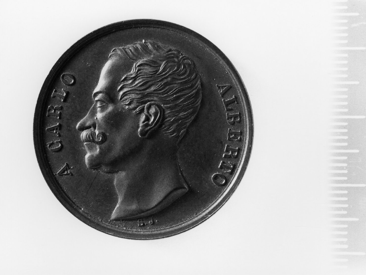 Dritto: Testa di Carlo Alberto a s. Rovescio: Entro corona d'alloro legenda