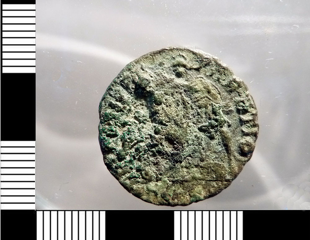 Dritto: Busto drappeggiato e corazzato di Costanzo Gallo a d. Rovescio: Soldato stante a s. abbatte un cavaliere, senza copricapo, che cadendo da cavallo solleva il braccio s.; a terra a d., uno scudo