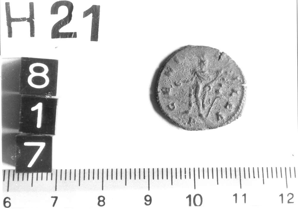 Dritto: Busto radiato a destra con corazza e paludamentum (A Bastien 1992-1994). Rovescio: Il Genius stante, volto a sinistra, tiene una patera e una cornucopia. A destra un'insegna militare
