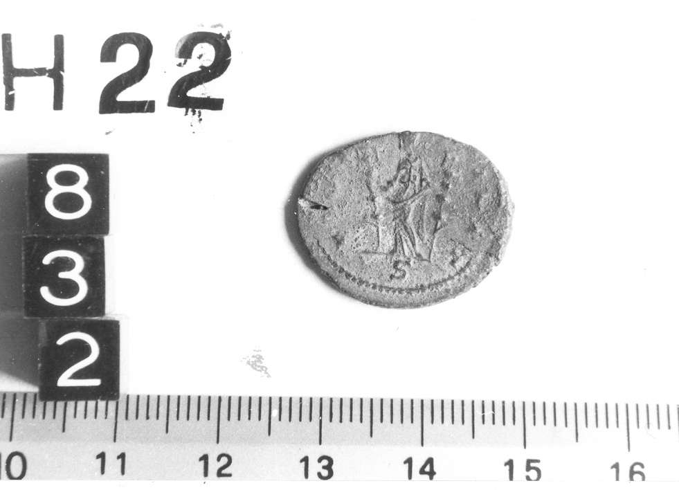 Dritto: Busto radiato a destra con corazza e paludamentum (A Bastien 1992-1994). Rovescio: La Fides rivolta a sinistra tiene due insegne militari