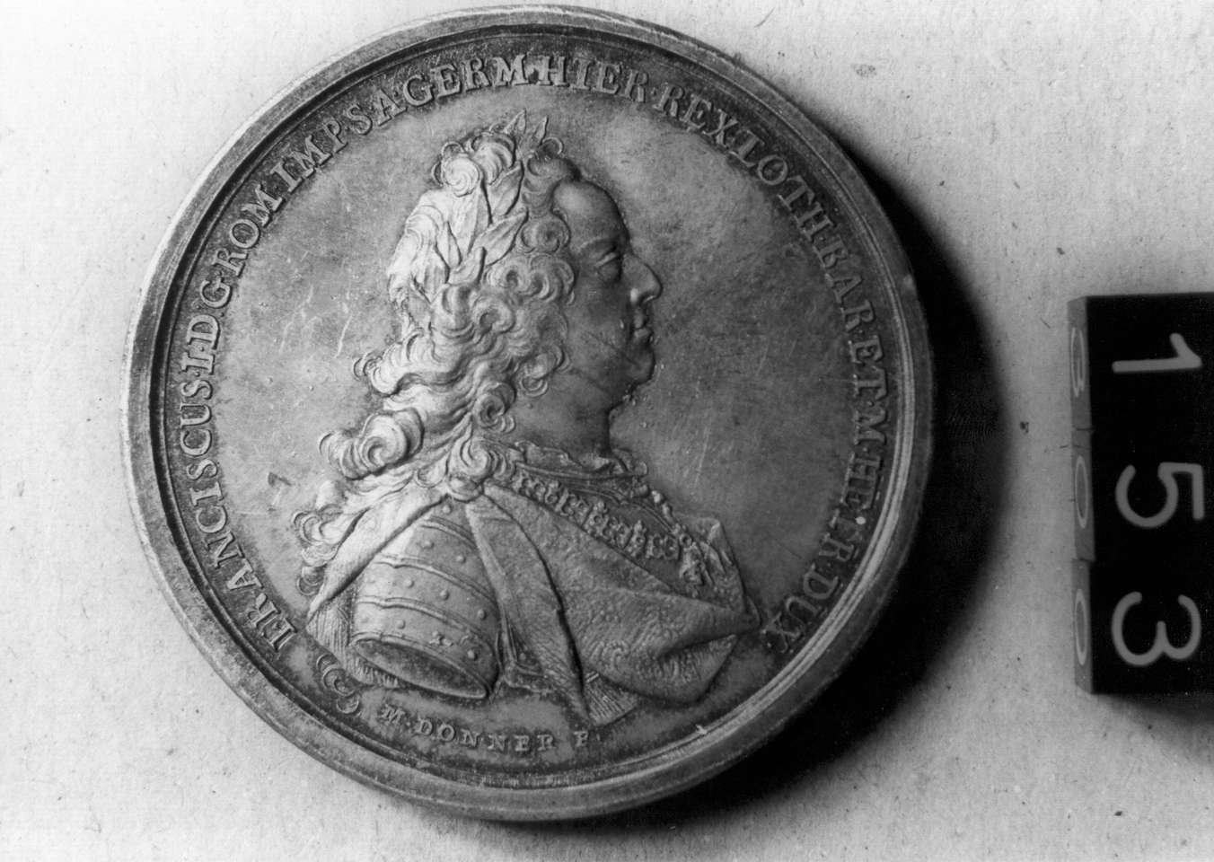 Dritto: Busto a destra di profilo capelli corti trattenuti da diadema e con velo in capo, grande orecchio e spillo simile sul pettoche trattiene il manto d'ermellino, veste scollata con pizzo. Rovescio: Busto laureato di profilo a destra con lunghi capelli sulle spalle, collare col Tosone d'oro sul petto e mantello trattenuto sulla spalla destra