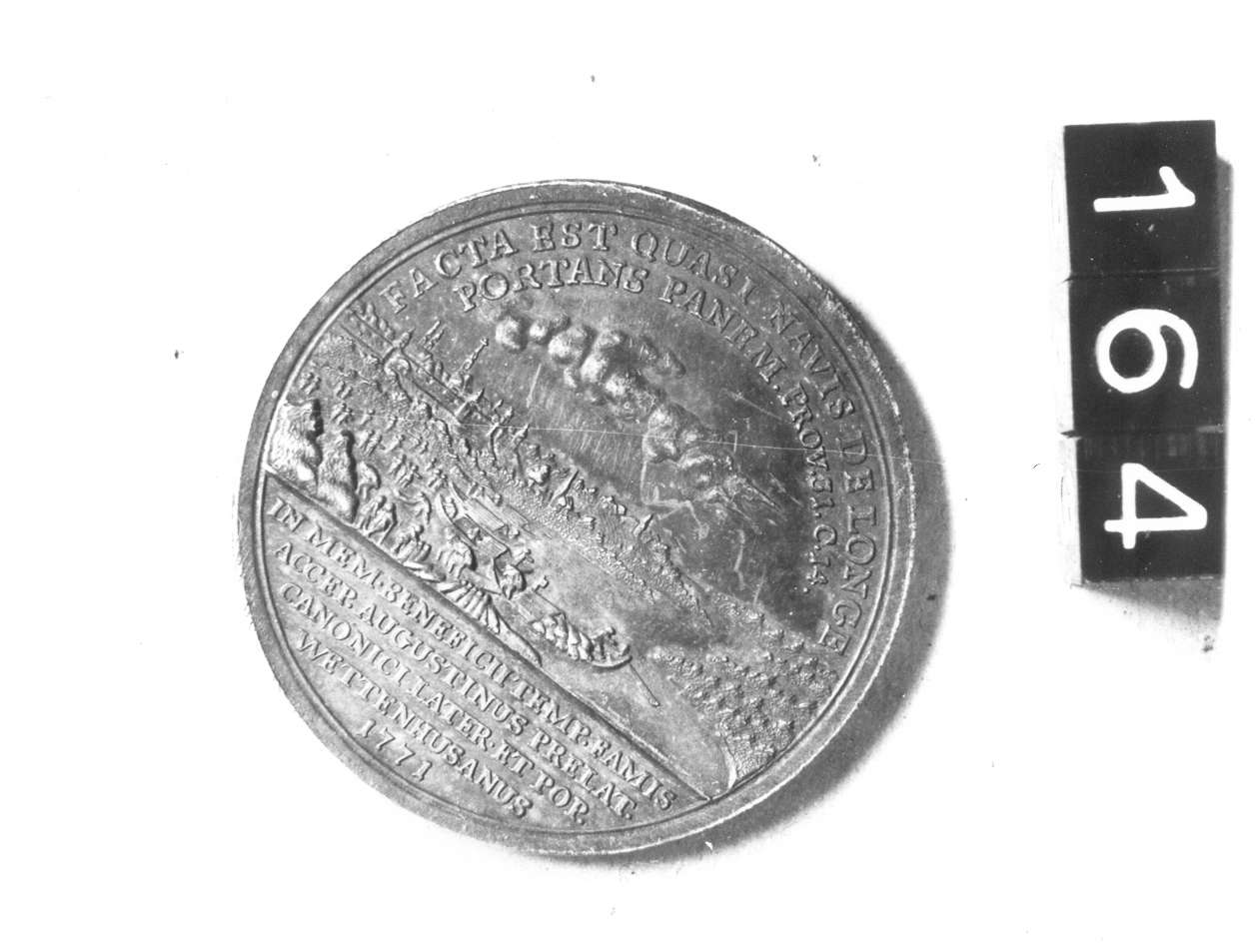 Dritto: Il prelato di Wettenhaus a destra indica il busto dell'imperatore su una base ai piedi della quale vi sono mazzi di grano. A sinistra una donna con bambini che porgono corone. Rovescio: Arrivo per via fluviale dei rifornimenti a Wettebhaus durante la carestia, nel fondo a sinistra la città con l'Abbazia