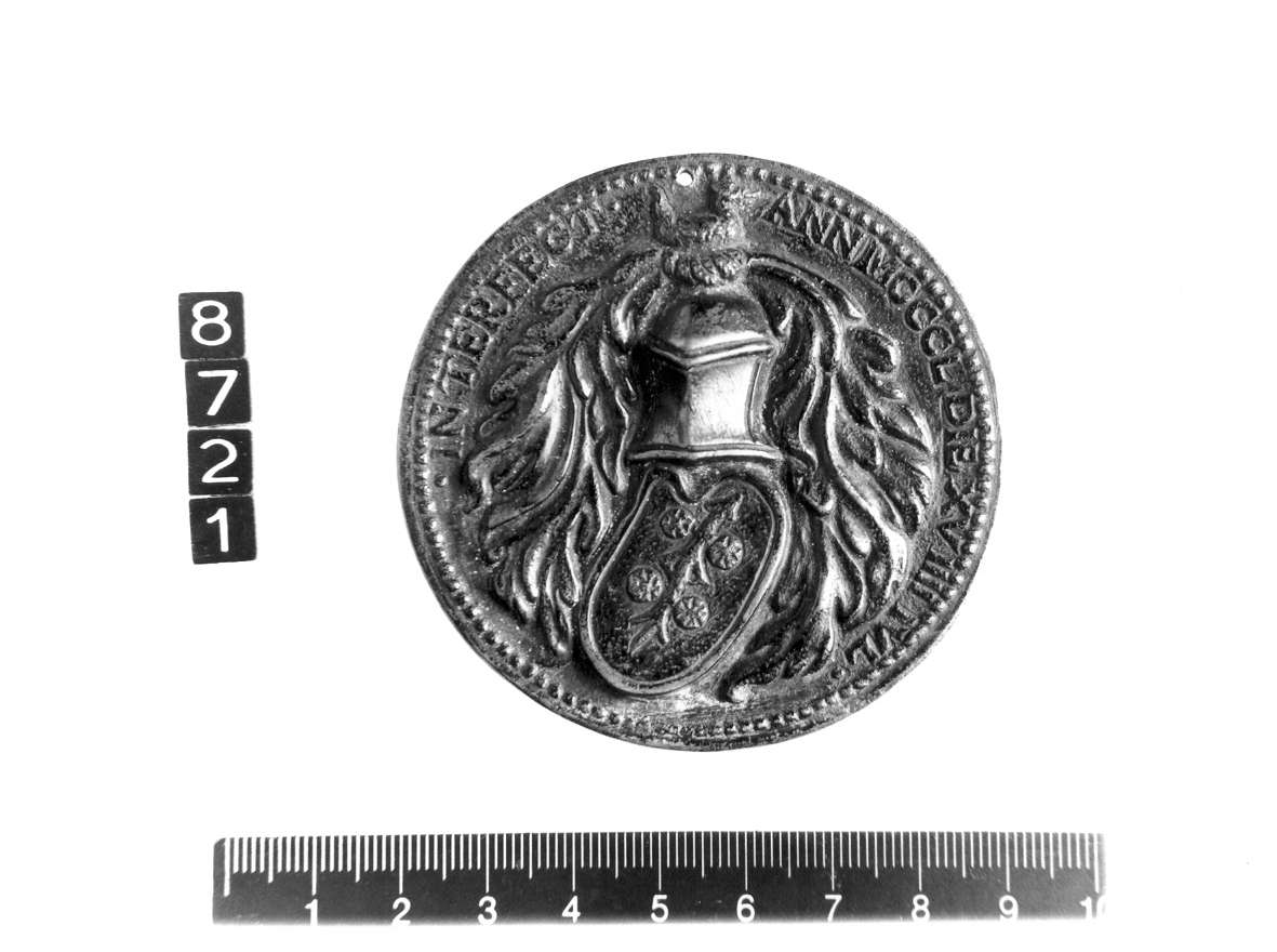 Dritto: Profilo di Jacopo II da Carrara, il capo coperto da un cappuccio, verso sinistra. Rovescio: Arme dei Carraresi sormontata da un elaborato cimiero