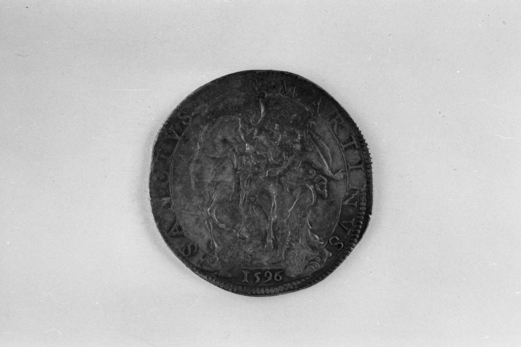 Dritto: Scudo ovale con cartocci ed intagli e con banda su cui LIBERTAS. Rovescio: Il santo a cavallo nell'atto di tagliare il mantello per il mendico