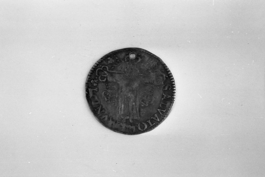 Dritto: Entro cornice perlinata, le lettere LVCA a caratteri gotici disposti a croce attorno a rosetta. Rovescio: Figura intera del Volto Santo con veste lunga ed ai lati motivi fitomorfi ornamentali