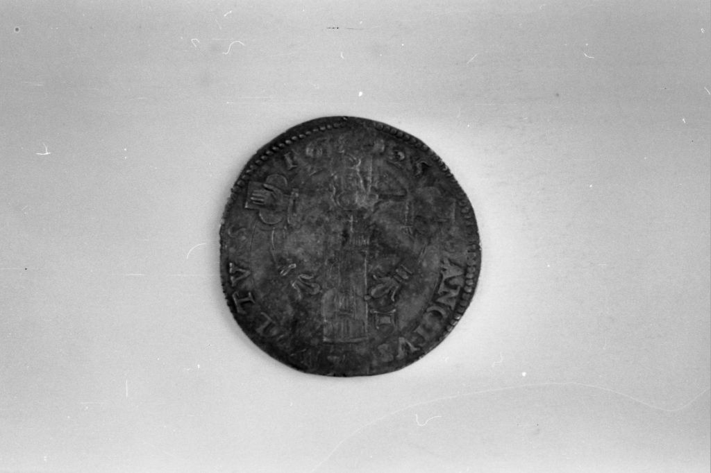 Dritto: Scudo cuoriforme ornato da volute e con banda su cui LIBERTAS. Rovescio: Figura interna del Volto Santo in croce attorno alla quale ornato a semicerchio terminante con grosso giglio