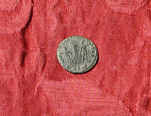 Dritto: busto di profilo, laureato, drappeggiato e corazzato di Costante a d.; c. perlinato. Rovescio: due soldati elmati, affiancati, stanti di fronte con le teste rivolte l'una verso l'altra, tengono una lancia verticale nella mano d. alzata ed uno scudo nella s.; nel mezzo un'insegna; c. perlinato