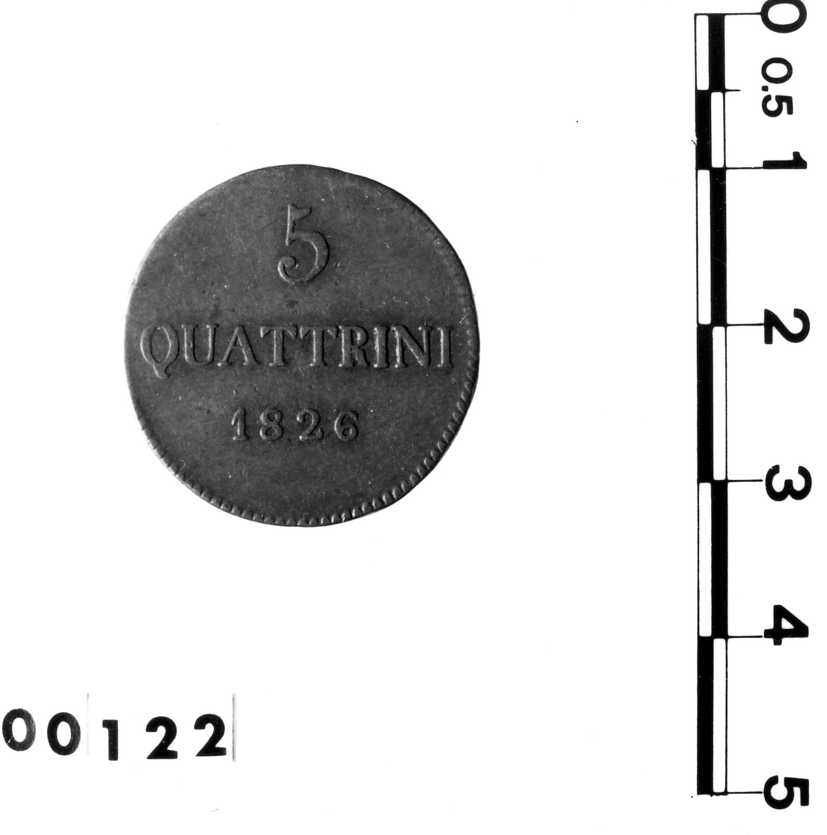 Dritto: moneta da 5 quattrini. Rovescio: