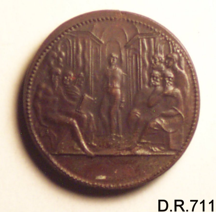 Dritto: busto di Marcello II volto a sinistra con piviale, capo nudo e barba. Rovescio: Gesù tra i dottori