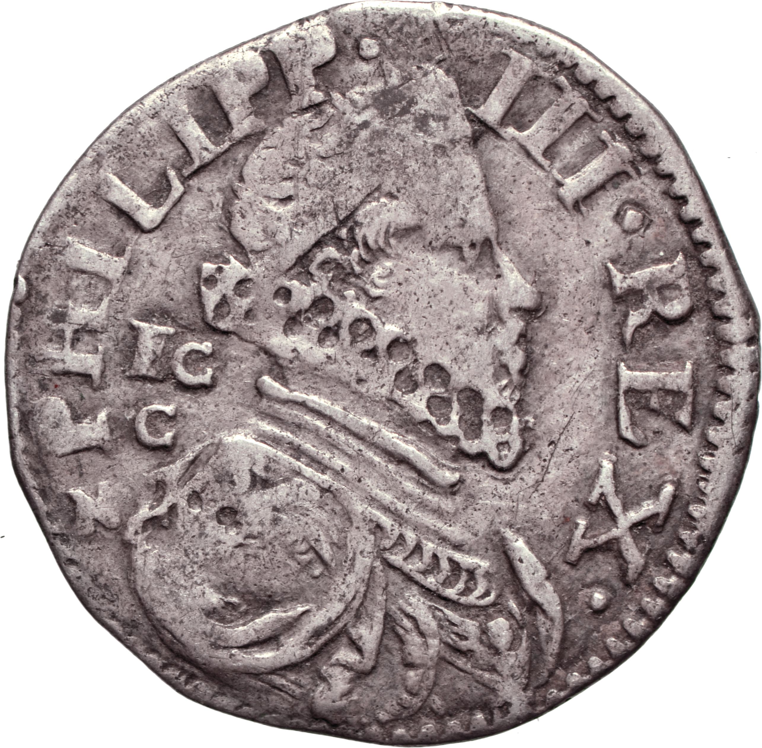 Dritto: Busto a testa radiata volto a d., con corazza, gorgiera e collare del toson d’oro; nel campo a s., F C | C. Campo monetale delimitato da filetto perlinato. Rovescio: Croce potenziata; sotto, ∙ 1620 ∙. Campo monetale delimitato da filetto perlinato