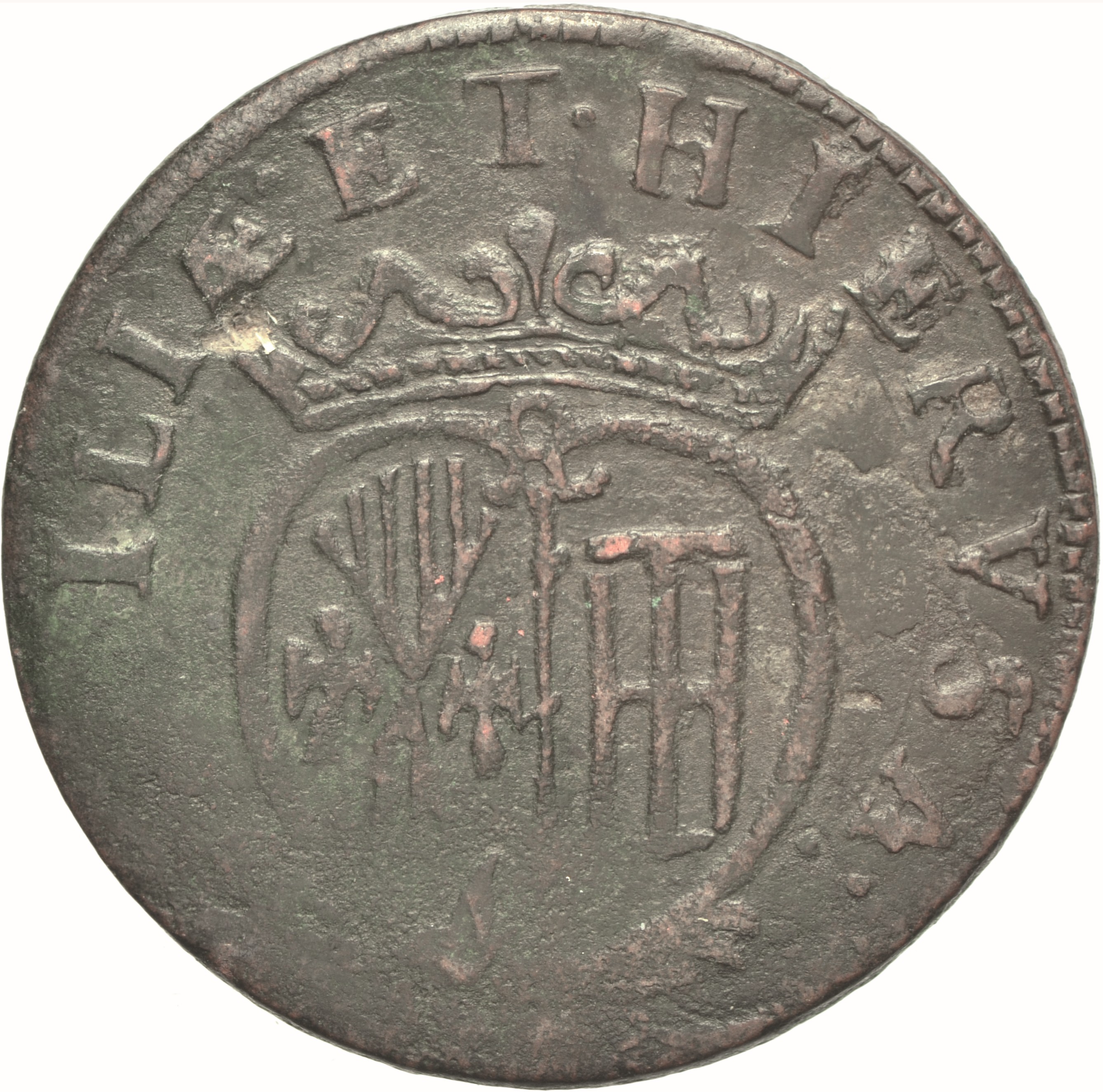 Dritto: Busto a testa nuda del re volto a destra, con lunga capigliatura e corazza ornata da sciarpa; sotto il busto, 83 ∙; nel campo a s., A C | A. Campo monetale delimitato da filetto dentellato. Rovescio: Scudo a cuore coronato, partito di Sicilia e Gerusalemme. Campo monetale delimitato da filetto dentellato