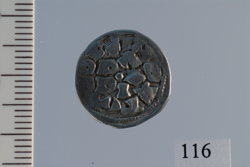 Dritto: iscrizioni concentriche separate da un cerchio. Rovescio: iscrizioni concentriche con globetto al centro