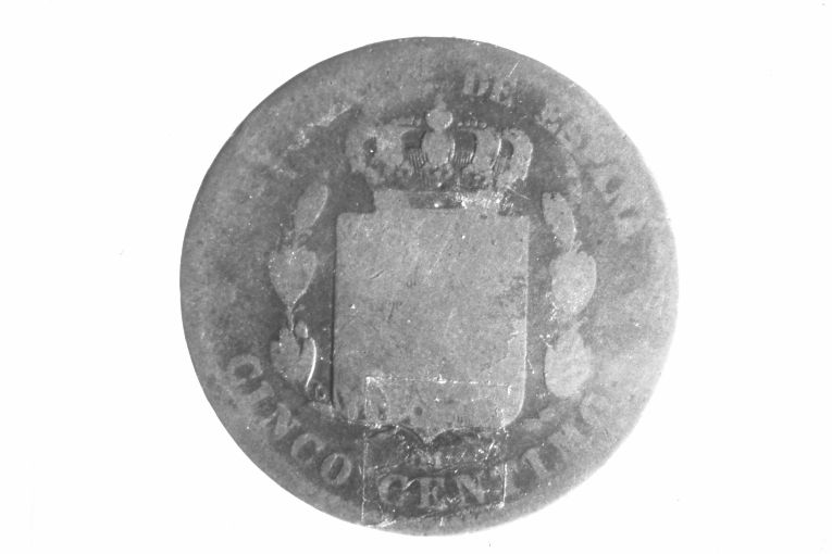 Dritto: arme regale sul verso scudo sannitico coronato: inquartato, alla torre nel primo, al leone rampante nel secondo, palato nel terzo, alla collana nel quarto; caricato di scudetto: ai tre gigli. Rovescio: