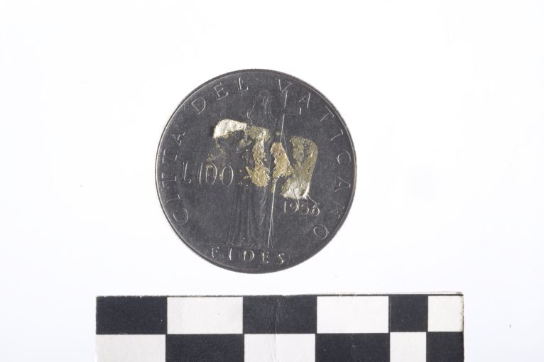 Dritto: Busto di Pio XII, a s. Rovescio: Allegoria della Fede con calice nella mano s., croce nella mano d