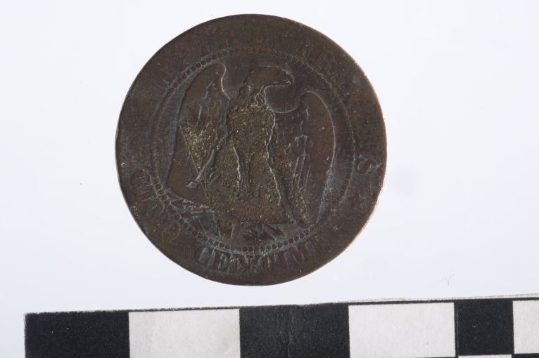 Dritto: Testa di Napoleone III, a s. Rovescio: Aquila imperiale francese, a d