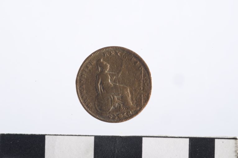 Dritto: Testa di Giorgio IV, con corona d'alloro, a s. Rovescio: Figura femminile seduta, con scudo, elmo e tridente, a d.; in ex. elementi floreali