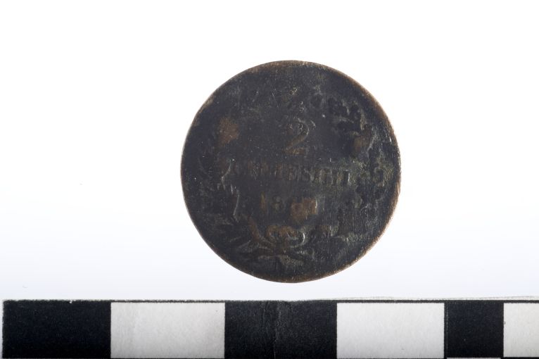 Dritto: Testa di Vittorio Emanuele II, a s. Rovescio: Rami di quercia e alloro legati; in alto stellone