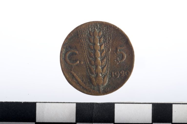 Dritto: Testa di Vittorio Emanuele III, a s. Rovescio: Spiga di grano
