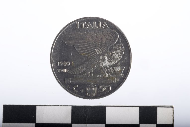 Dritto: Testa di Vittorio Emanuele III, a d. Rovescio: Aquila ad ali spiegate, di profilo, a d., su fascio; in ex. stemma sabaudo