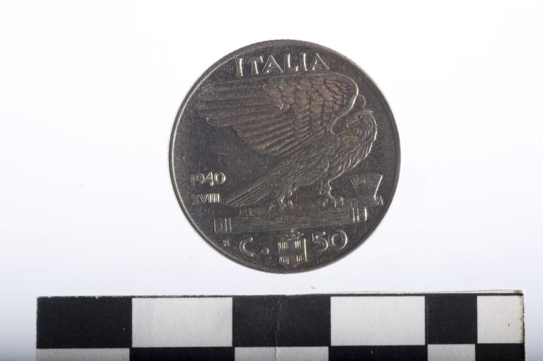 Dritto: Testa di Vittorio Emanuele III, a d. Rovescio: Aquila ad ali spiegate, di profilo, a d., su fascio; in ex. stemma sabaudo