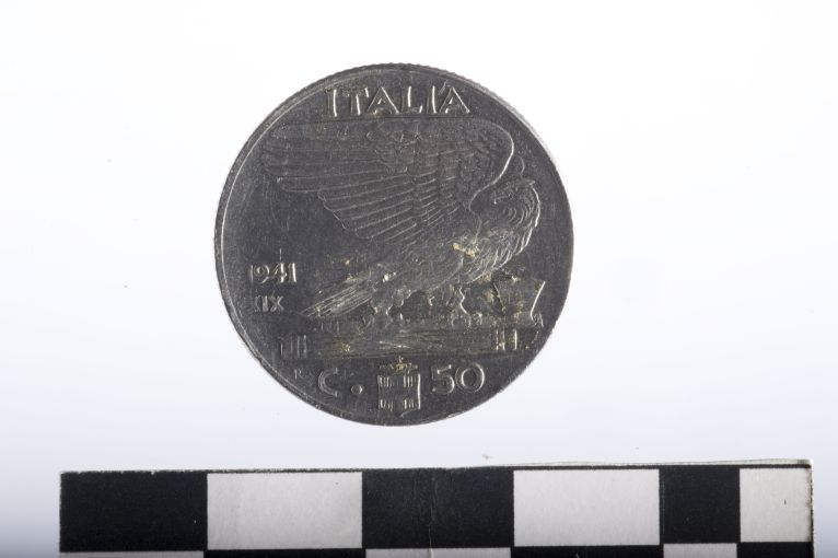 Dritto: Testa di Vittorio Emanuele III, a d. Rovescio: Aquila con ali spiegate, di profilo, a d. con zampe sul fascio; in ex. stemma sabaudo