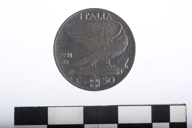 Dritto: Testa di Vittorio Emanuele III, a d. Rovescio: Aquila con ali spiegate, di profilo, a d. con zampe sul fascio; in ex. stemma sabaudo