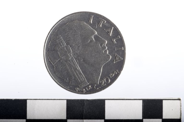 Dritto: Testa di Vittorio Emanuele III, a s. Rovescio: Testa femminile, a d., con fascio e stemma sabaudo, a s