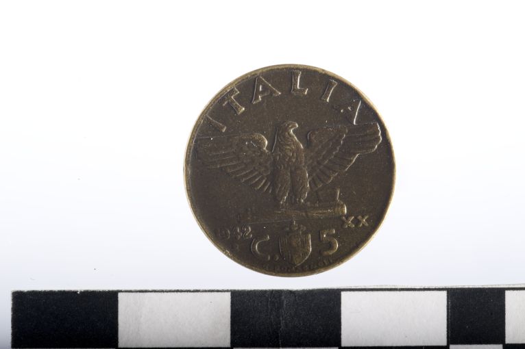 Dritto: Testa di Vittorio Emanuele III, a d. Rovescio: Aquila frontale con ali spiegate, con zampe su fascio; in ex. stemma sabaudo