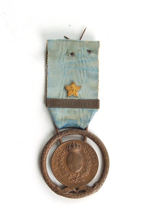 Dritto: Scudo sabaudo con rami di alloro. Rovescio: Due rami di alloro racchiudono il nome del decorato, il luogo e la data dell'azione