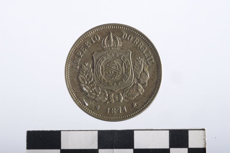 Dritto: Stemma dell'Impero del Brasile; in alto lungo il bordo: legenda; in basso: data tra stelle. Rovescio: Valore; lungo il bordo: legenda con stella