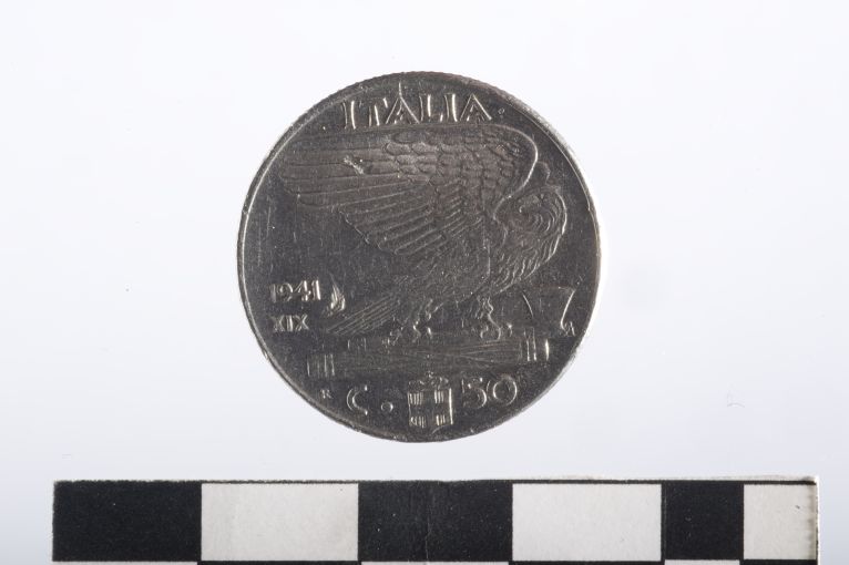 Dritto: Testa di Vittorio Emanuele III a d.; in basso: nome dell'autore. Rovescio: Aquila ad ali spiegate a d., su fascio littorio; in esergo: stemma sabaudo tra il valore; in alto: legenda; a sx.: datazione e anno dell'era fascista; in basso a sx.: marchio di zecca