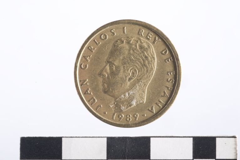 Dritto: Testa di re Juan Carlos I a s.; lungo il bordo: legenda e data separate da punti. Rovescio: Stemma di Spagna tra simboli delle colonne d'Ercole con motto; in alto e in basso: valore; in basso a s.: marchio di zecca sormontato da corona reale