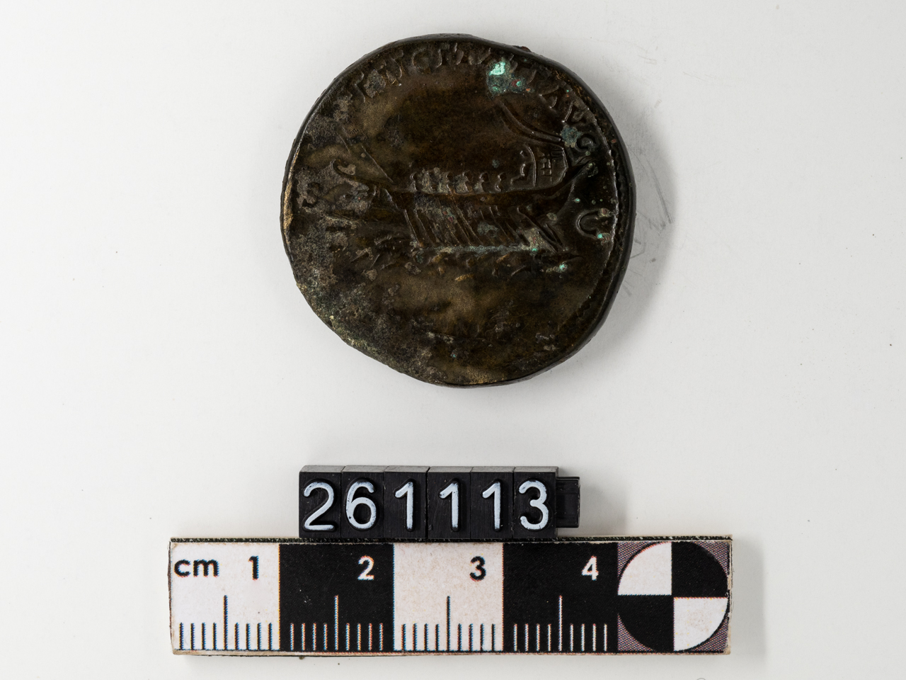 Dritto: Busto loricato e laureato di Adriano. Rovescio: Galera