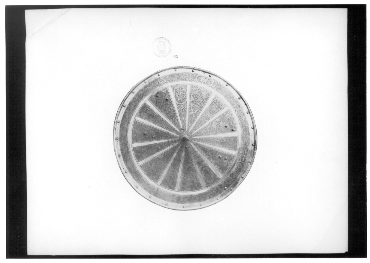 Armeria Reale, Torino - Brocchiere a bande alternate F32 appartenente all'armatura B8 - vista frontale