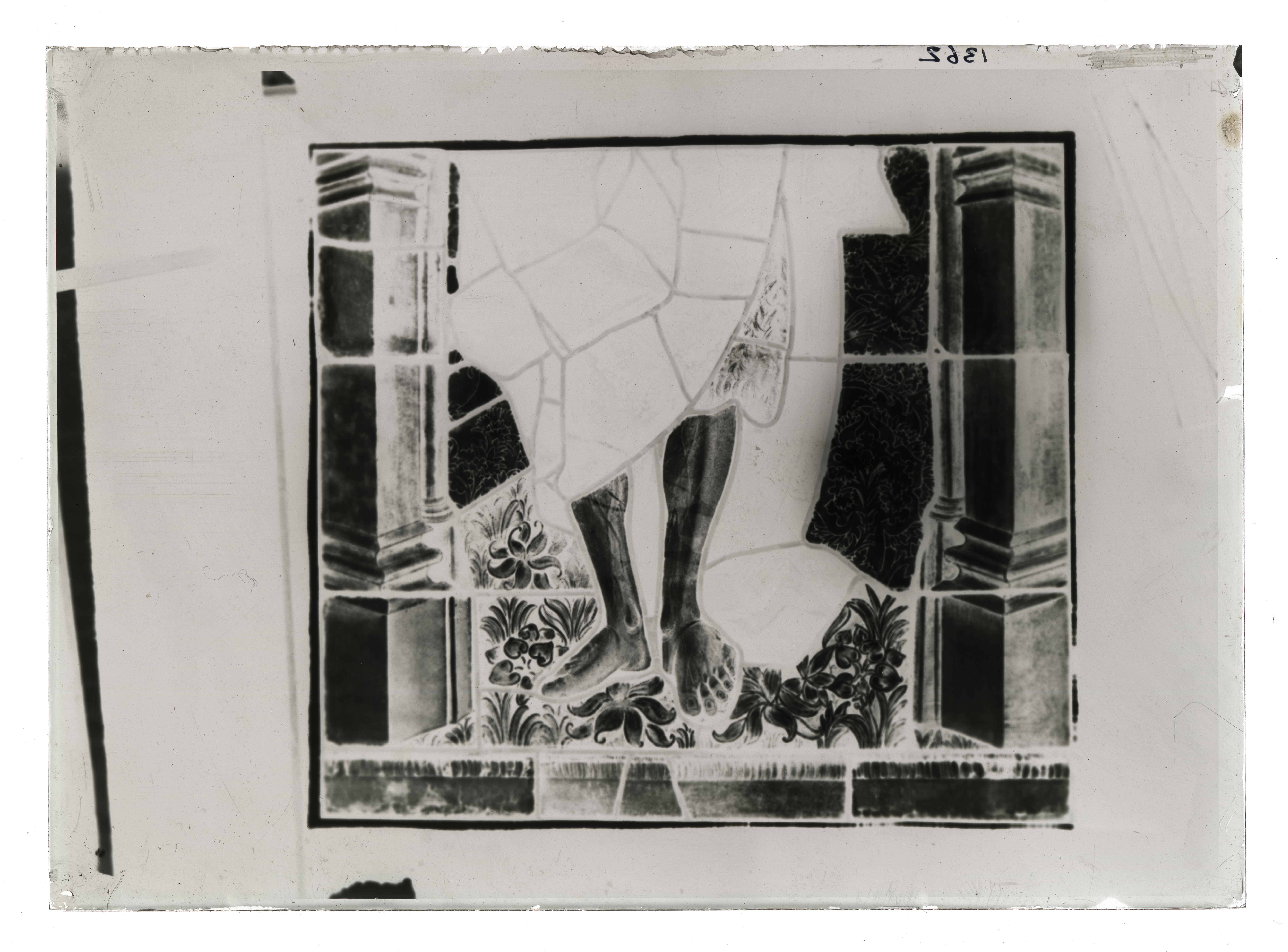 Aosta (AO) / Chiesa collegiata di S. Orso/ = vetrata/ particolare = dopo il restauro AO - Aosta - Collegiata dei Santi Pietro e Orso - abside - lato sud: San Giovanni Battista, particolare della parte inferiore della figura del santo, vista della vetrata dopo il restauro