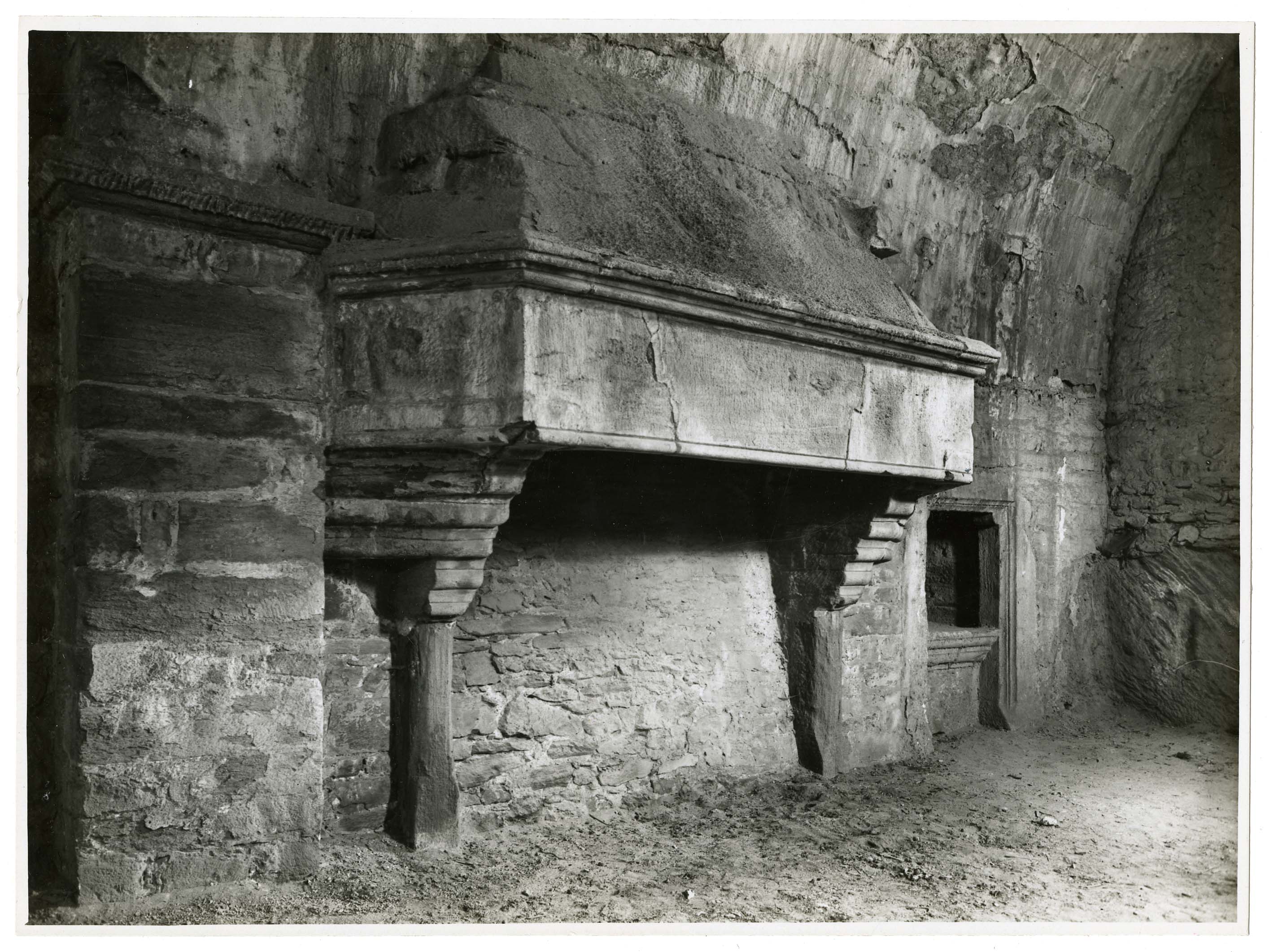 (AO) Verres - Castello =/ camino = prima del restauro AO - Verrès - Castello - Pianterreno - Salone di rappresentanza: camino, prima del restauro