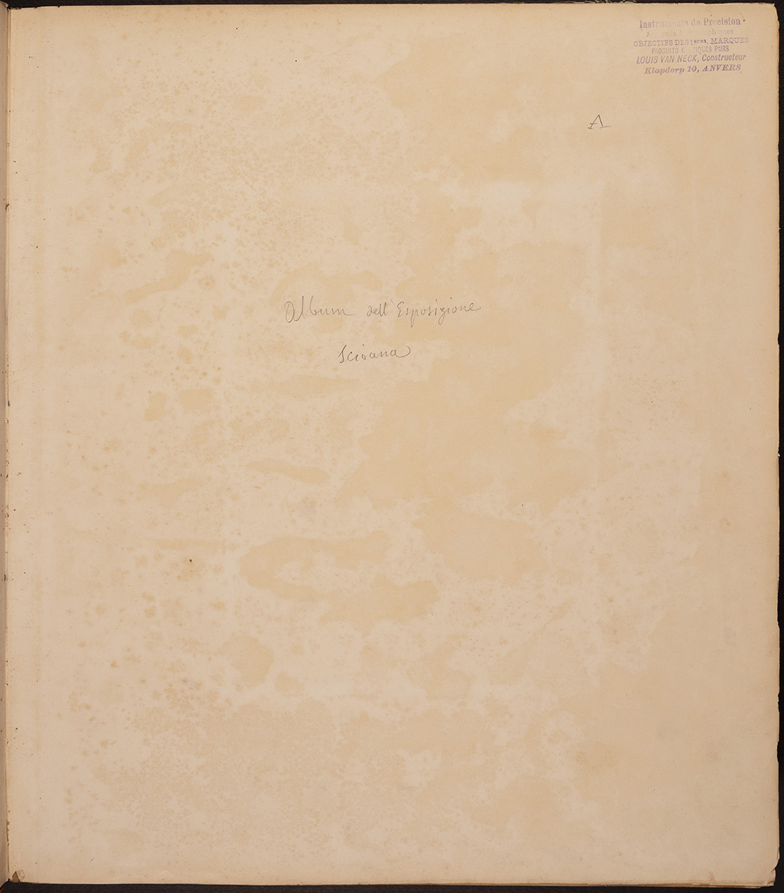 L’album, rilegato come un volume a stampa, contiene 20 fotografie, posizionate centralmente su un supporto secondario in cartoncino di colore chiaro. Furono realizzate da Louis Van Neck in occasione dell’esposizione tenutasi ad Anversa nel 1887 con lo scopo di documentare l’allestimento italiano presso la Gran sala del circolo artistico della città. Viene ritratto un gruppo di statuette, oggetti sacri e di uso quotidiano, resti umani, trofei animali e pelli proveniente dalle regioni del bacino del fiume Congo e dalle aree costiere dell’Africa occidentale