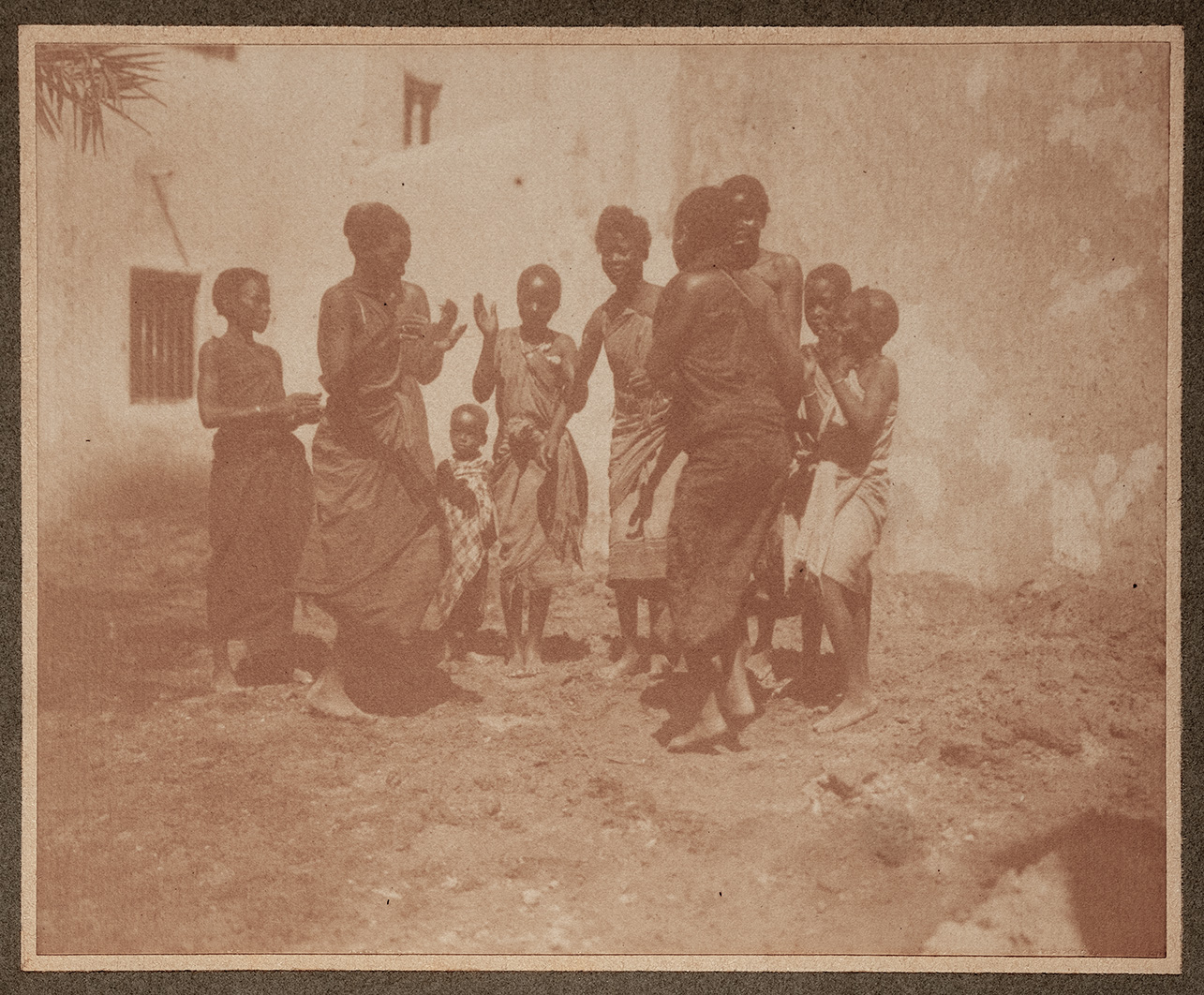 L'immagine ritrae un gruppo di sei ragazze somale, le quali indossano un lungo vestito scuro monospalla che copre loro il corpo fino ai piedi, intento a battere le mani e a danzare. Si possono osservare anche tre bambine che, così come le madri, si muovono a ritmo di musica. Sullo sfondo, il muro di una costruzione in muratura bianca posta nei pressi della città di Merca