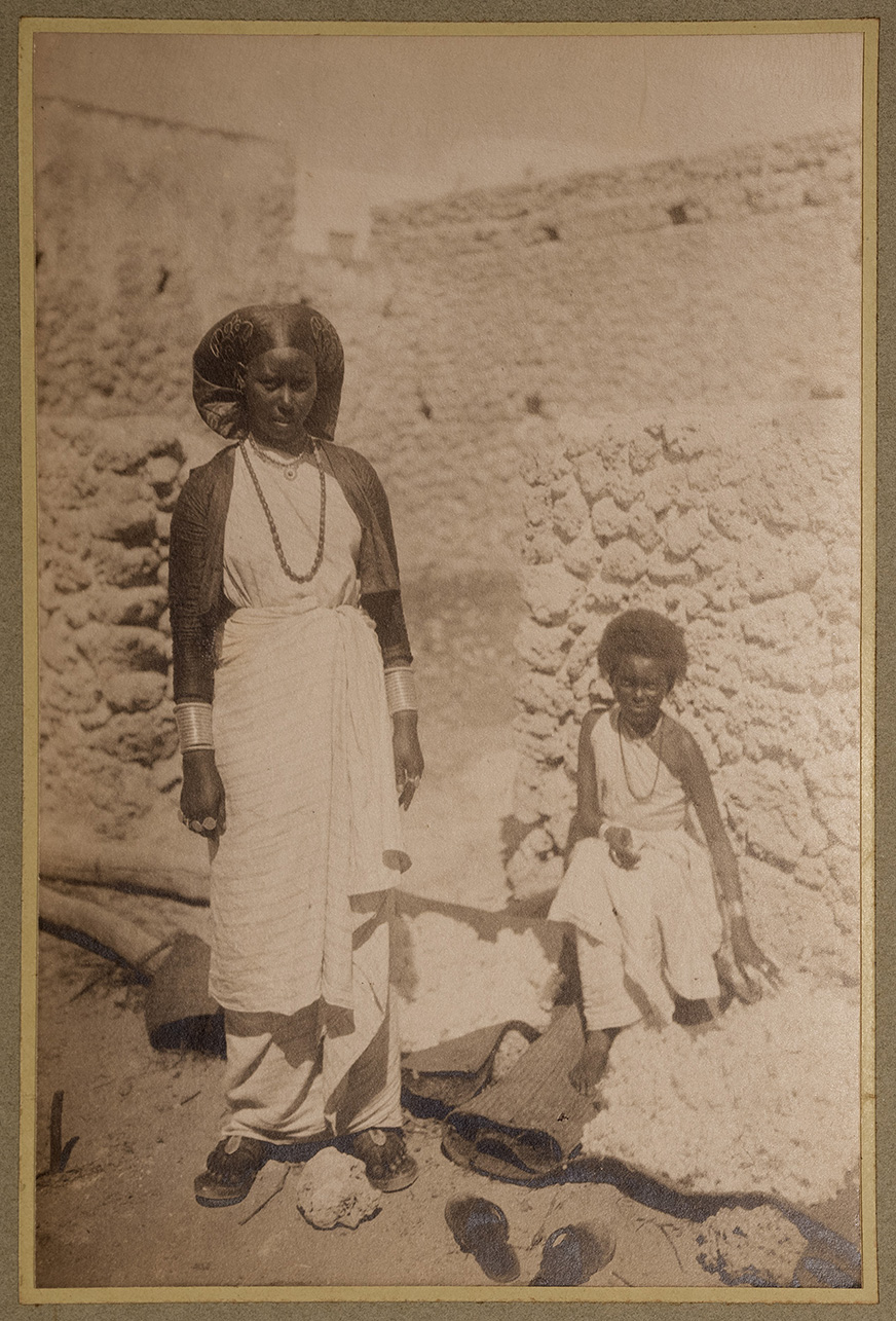L'immagine ritrae una donna e una bambina in posa, con lo sguardo rivolto alla camera, presso la città di Merca (Marka). Entrambe vestono con una tunica monospalla di colore bianco, che copre loro fino ai piedi, e con sandali in pelle. Indossano, inoltre, lunghe collane e due bracciali in argento. Sullo sfondo, alcune costruzioni in pietra
