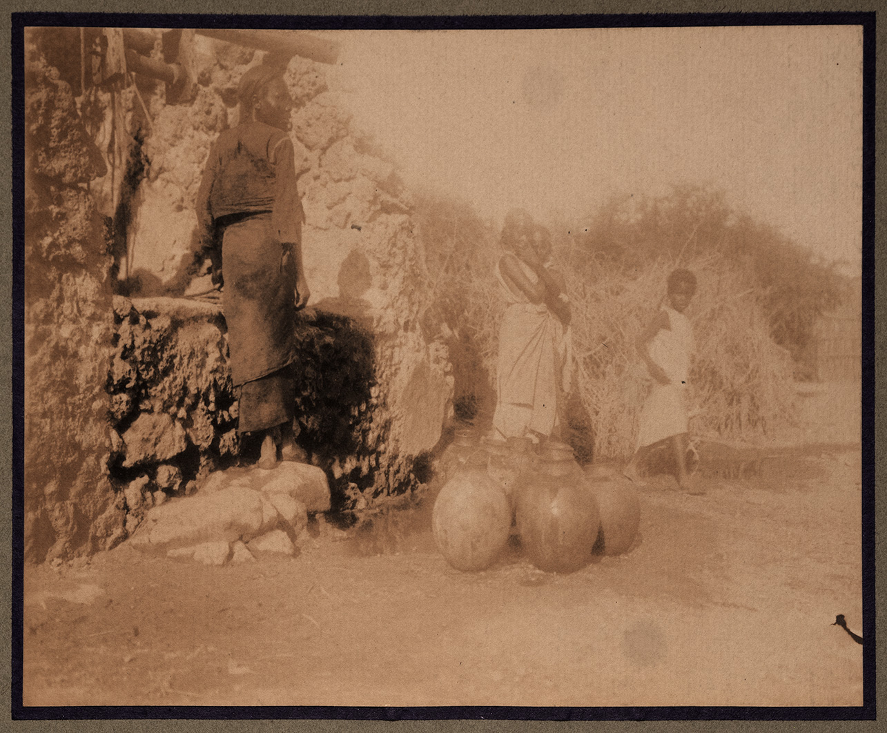 L'immagine ritrae un gruppo di ragazze somale, vestite con lunghe tuniche di colore chiaro o scuro monospalla che coprono loro fino alle ginocchia, al pozzo. Sulla destra è possibile osservare un gruppo di vasi utilizzati con tutta probabilità per raccogliere l'acqua. Sullo sfondo, la boscaglia e alcune pietre di grande dimensione