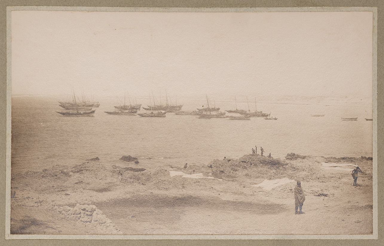 L'immagine ritrae la costa della città portuale di Merca (Marka), vicino alla quale stanno navigando alcune imbarcazioni in legno. In primo piano, si può osservare un uomo somalo anziano. Vestito con una lunga tunica scura che gli copre il corpo dalle spalle alle caviglie, volge lo sguardo al fotografo. Sullo sfondo, un gruppo di uomini sulla scogliera che osservano i sambuchi