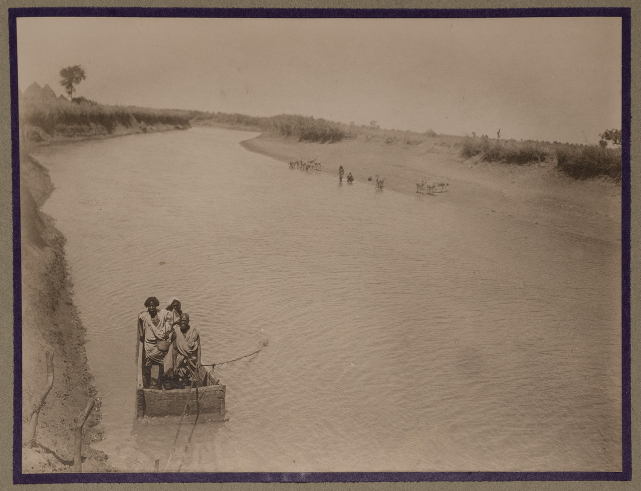 L'immagine ritrae tre uomini somali su una piccola imbarcazione di legno, utilizzata per attraversare le sponde del fiume Uebi Scebeli (Shabeelle). Il primo, nonché il più anziano, tiene in mano la corda utilizzata per muoversi da una parte all'altra del corso d'acqua. Egli indossa, così come gli altri due soggetti raffigurati, una tunica bianca che lascia scoperte le spalle ma che lo copre fino alle caviglie. Sul capo, il ragazzo in seconda fila porta un velo. Sullo sfondo la boscaglia somala)
