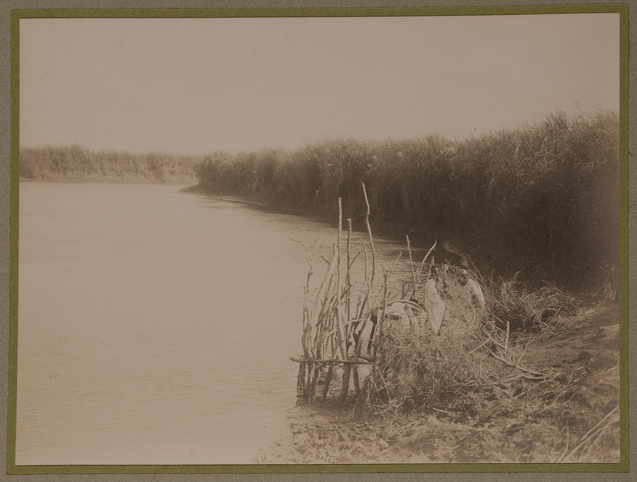 L'immagine ritrae una palizzata costruita da due uomini somali, vestiti con lunghe tuniche di colore bianco monospalla, la cui funzione, come segnalato nella didascalia scritta dall'autore dello scatto, dovrebbe essere quello di proteggere gli abitanti di Caitoi dai coccodrilli