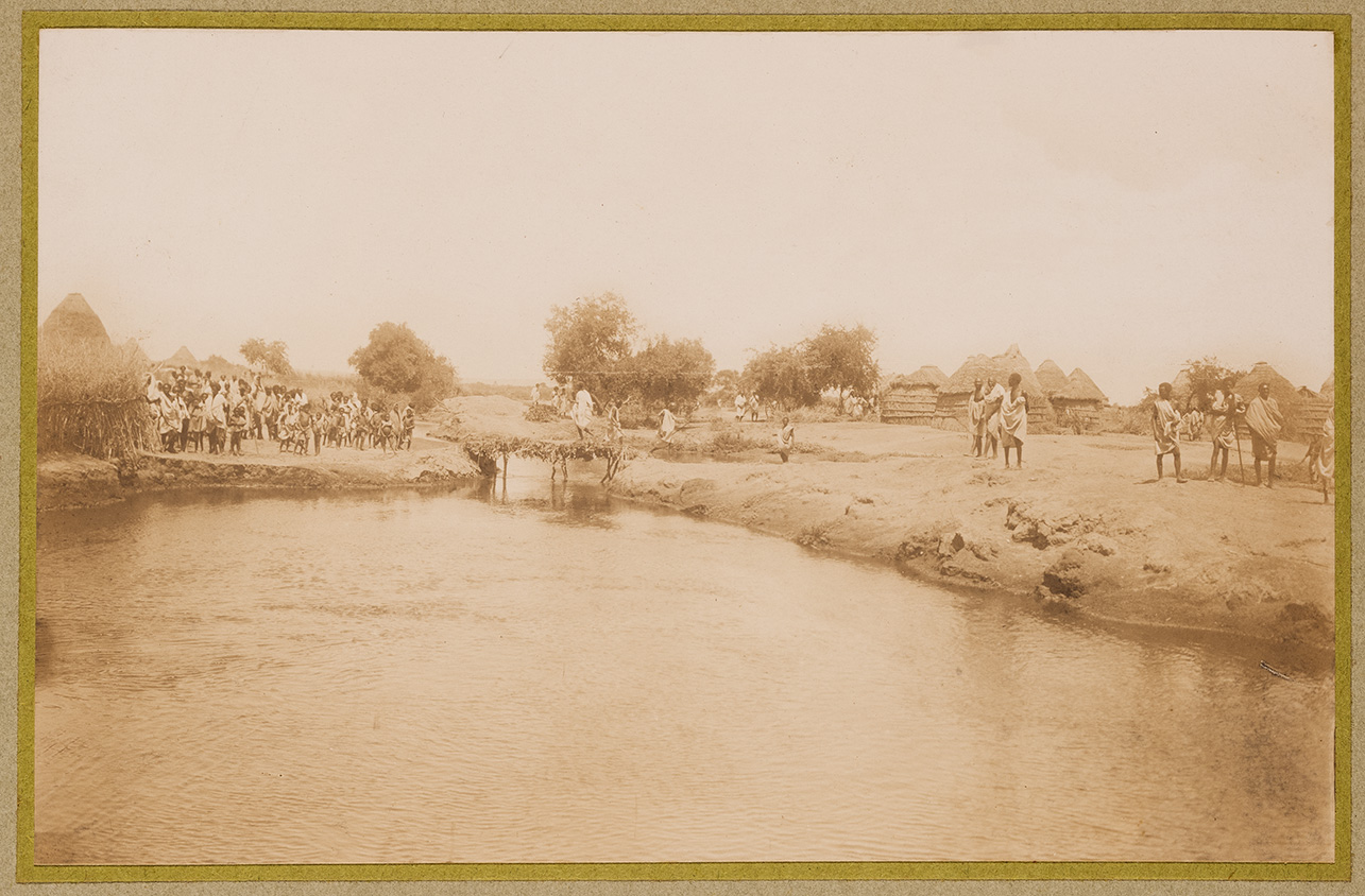 L'immagine ritrae le due sponde del corso d'acqua che attraversa il comprensorio agricolo di Bulomererta (Buulo Mareer), collegate da un ponte costruito con legno e paglia. Sul lato sinistro del fiume si possono osservare uomini, donne e bambini che volgono lo sguardo in camera. Sono tutti perlopiù vestiti con lunghe tuniche bianche ma le donne portano anche il velo. Si intravedono alcune abitazioni a pianta circolare e con il tetto spiovente in secondo piano. Sulla destra, invece, si possono osservare una ventina di uomini somali, i cui abiti sono gli stessi di quelli della sponda sinistra, e altri edifici. Sullo sfondo, la boscaglia somala