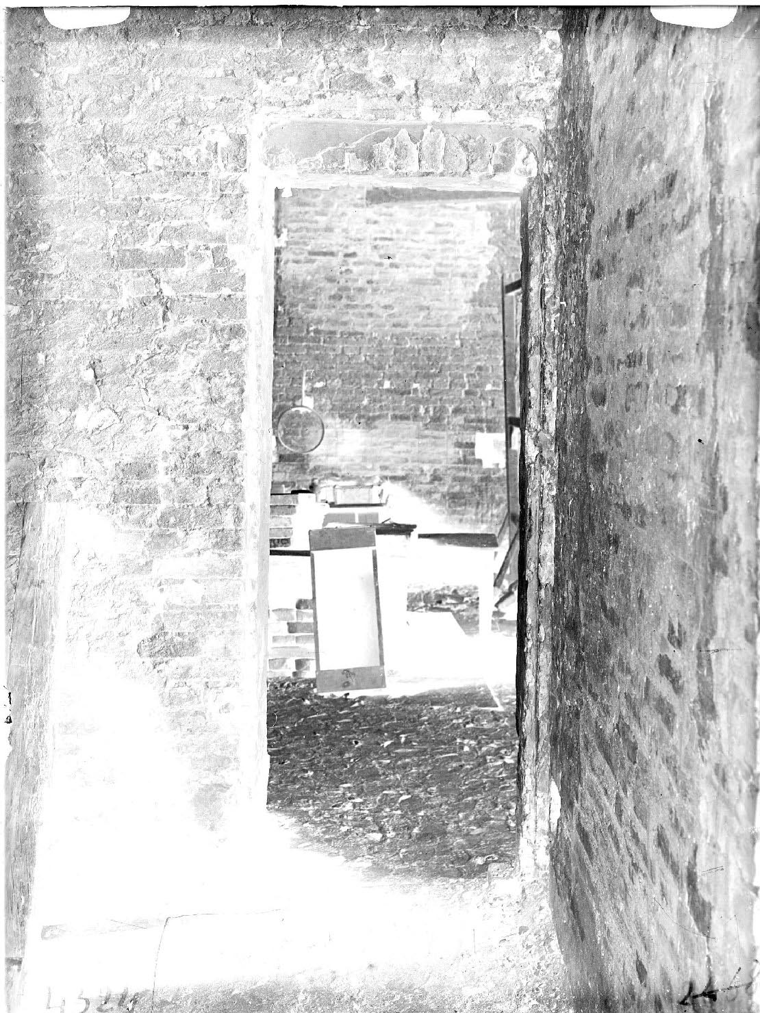 - NOTIZIE STORICO CRITICHE La ripresa fa parte del reportage fotografico eseguito a corredo della campagna di restauro della Casa del Mantegna, l'abitazione-studio mantovana dell'artista, negli anni 1940-1942. A quell'epoca il soprintendente ai Monumenti di Verona, Raffaello Niccoli, assunse la direzione dei lavori di restauro della struttura, di proprietà della Provincia di Mantova, occupata dall'Istituto Tecnico "A. Pitentino". Niccoli fece eseguire dalla Soprintendenza rilievi e disegni e raccolse "un documentario, il più completo che è stato possibile, di fotografie dei vari ritrovamenti e delle varie fasi del lavoro ... in parte eseguite dal fotografo Calzolari e in parte direttamente dalla Soprintendenza" (SBAP Brescia, Archivio Monumenti, b. 21/2: Mantova. Casa del Mantegna, lettere del 15 e del 30 maggio 1941). Attraverso questo reportage, la "Prima relazione sui lavori di restauro" (conservata presso l'Archivio Storico della Provincia di Mantova e riportata ampiamente in bibliografia (G. Sacchi, Mantegna Archipictor. La dimora dell'artista, Mantova 2000, pp. 53-67) e altro materiale documentario degli anni 1938-1942, è possibile seguire i passaggi e i momenti attraverso i quali la residenza quattrocentesca venne riportata allo struttura originaria. Le lettere, i documenti e la relazione del maggio 1941 permettono altresì di stabilire un terminus ante quem per la maggior parte, se non per tutta, la campagna fotografica e stabilire quindi un arco cronologico di esecuzione delle riprese tra il 1940 e il 1941