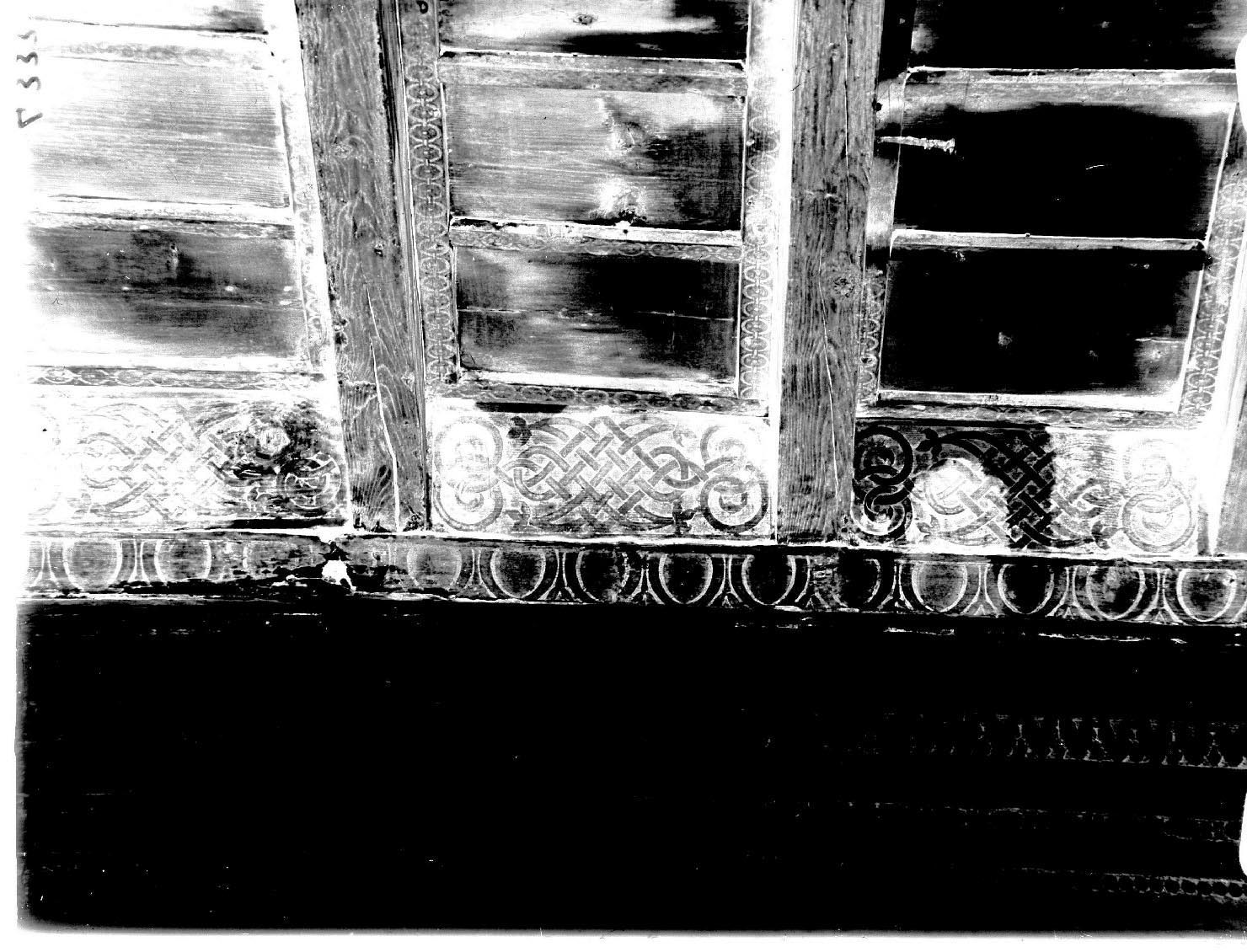 - NOTIZIE STORICO CRITICHE La ripresa fa parte del reportage fotografico eseguito a corredo della campagna di restauro della Casa del Mantegna, l'abitazione-studio mantovana dell'artista, negli anni 1940-1942. A quell'epoca il soprintendente ai Monumenti di Verona, Raffaello Niccoli, assunse la direzione dei lavori di restauro della struttura, di proprietà della Provincia di Mantova, occupata dall'Istituto Tecnico "A. Pitentino". Niccoli fece eseguire dalla Soprintendenza rilievi e disegni e raccolse "un documentario, il più completo che è stato possibile, di fotografie dei vari ritrovamenti e delle varie fasi del lavoro ... in parte eseguite dal fotografo Calzolari e in parte direttamente dalla Soprintendenza" (SBAP Brescia, Archivio Monumenti, b. 21/2: Mantova. Casa del Mantegna, lettere del 15 e del 30 maggio 1941). Attraverso questo reportage, la "Prima relazione sui lavori di restauro" (conservata presso l'Archivio Storico della Provincia di Mantova e riportata ampiamente in bibliografia (G. Sacchi, Mantegna Archipictor. La dimora dell'artista, Mantova 2000, pp. 53-67) e altro materiale documentario degli anni 1938-1942, è possibile seguire i passaggi e i momenti attraverso i quali la residenza quattrocentesca venne riportata allo struttura originaria. Le lettere, i documenti e la relazione del maggio 1941 permettono altresì di stabilire un terminus ante quem per la maggior parte, se non per tutta, la campagna fotografica e stabilire quindi un arco cronologico di esecuzione delle riprese tra il 1940 e il 1941