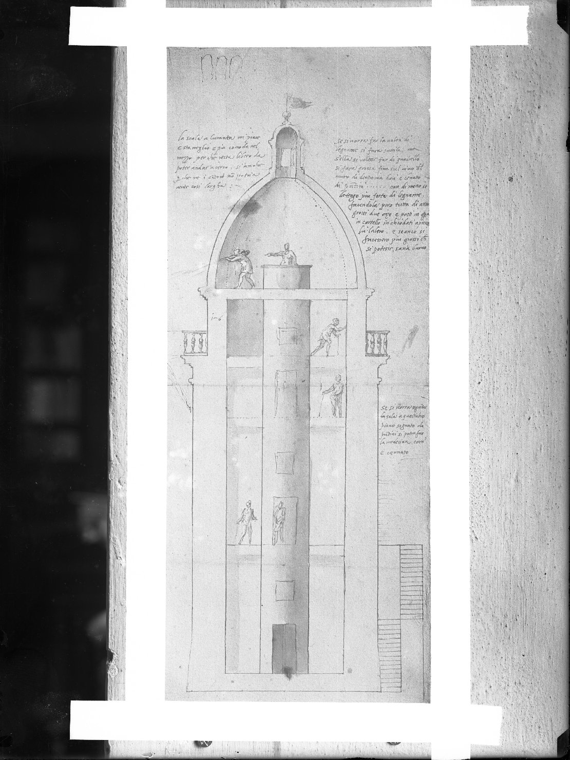 - NOTIZIE STORICO CRITICHE La ripresa fa parte in un piccolo dossier fotografico di documenti dell'Archivio di Stato di Mantova, come risulta dall'Inventario veronese delle lastre e dalle note vergate a matita su alcuni negativi. La presenza di queste immagini nelle raccolte fotografiche della Soprintendenza di Verona relative si giustifica, come nel caso delle riproduzioni di stampe e documenti dell'archivio eseguite per il Museo del Risorgimento (NCTN 00727538-580), dalla volontà di acquisire una copia dei documenti da conservare, consultare o riprodurre in Palazzo Ducale o nell'ufficio veronese. In ogni caso va ricordata la presenza in Palazzo, nel Castello di San Giorgio, da metà '700 a inizio '900, di diversi archivi: nella seconda metà del '700 l'amministrazione austriaca aveva allestito in Castello un "ricetto di vecchie carte"; nel 1868 la raccolta venne affiancata dal neonato Archivio di Stato fino al 1883, quando l'istituto si trasferì nell'ex Convento dei Gesuiti. Secondo quanto riportato dal direttore di Palazzo Ducale, Clinio Cottafavi, i lavori di sgombero degli archivi dal Castello si compirono solo all'inizio del Novecento (C. Cottafavi, Palazzo Ducale di Mantova. Pian terreno di Castello, in "Bollettino d'Arte, maggio 1931, p. 523). Per quanto concerne la datazione delle riprese, le fotografie del Museo del Risorgimento sono attribuibili al 1938 e la maggior parte degli scatti relativi a Mantova e a Palazzo Ducale di Mantova conservati nell'archivio fotografico risale agli anni '20-'30 del Novecento. Sulla base di queste considerazioni, si propone un arco cronologico di esecuzione delle fotografie tra il 1920 e il 1938. Il disegno di Pedemonte qui riprodotto di trova in Archivio di Stato di Mantova, Raccolta di Cimeli, 135. L'inventario della raccolta informa della provenienza del disegno dall'Archivio Gonzaga, busta 2638