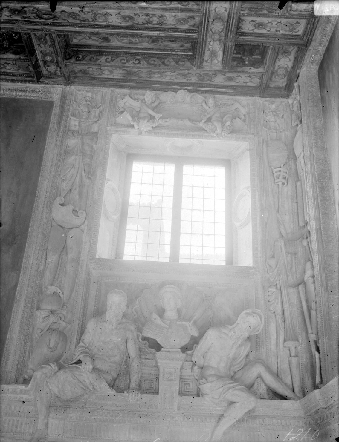 - NOTIZIE STORICO CRITICHE L'immagine in esame è pubblicata nell'articolo di Clinio Cottafavi, R. Palazzo Ducale di Mantova. Sale dei Capitani e dei Marchesi in Corte Nuova in Bollettino d'Arte, Serie II, Marzo 1929, pp. 421-432. La leggibilità dello scatto è compromessa dalla presenza della finestra centrale che comporta un eccesso di luminosità con conseguente sovraesposizione dell'immagine. Gli stucchi agli angoli della Sala dei Capitani, raffiguranti i quattro capitani Luigi, Guido, Ludovico I e Francesco I, già attribuiti al padovano Francesco Segala, sono probabilmente opera del modellatore modenese Iacopo d'Ughetto, cui spettano anche quelli della precedente Sala di Manto. (L'Occaso Stefano, Il Palazzo Ducale di Mantova, Electa Mondadori, 2002)
