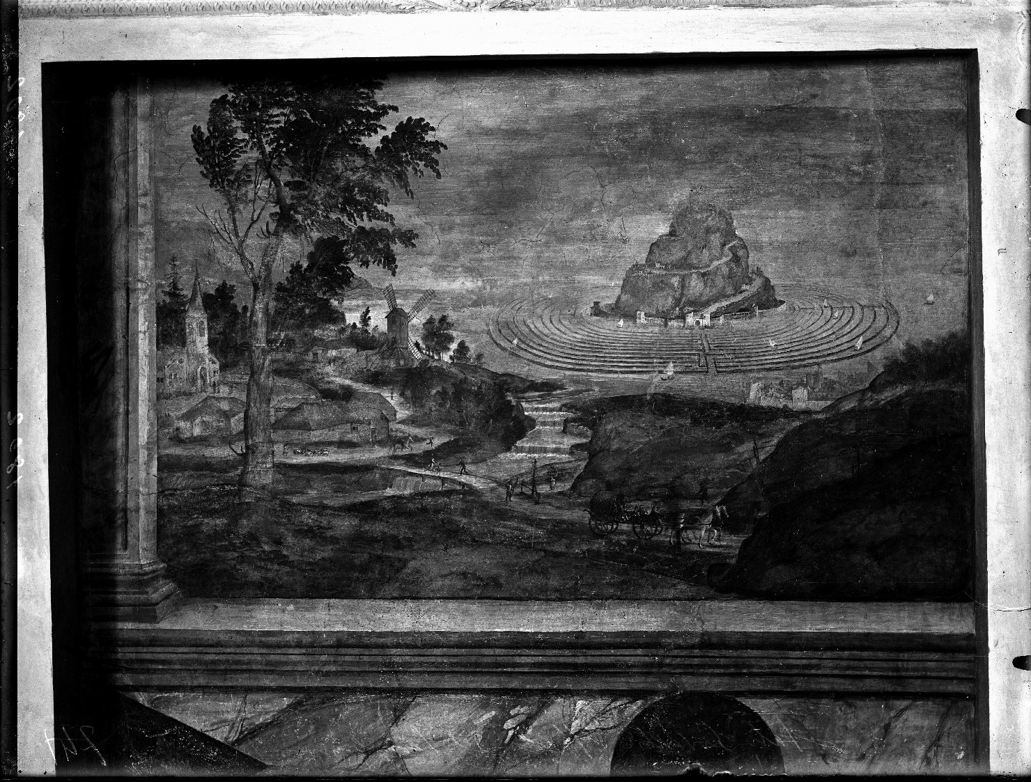 - NOTIZIE STORICO CRITICHE La lastra documenta l'affresco rappresentante il labirinto d'acqua che si trova sulla parete est della Sala dei cavalli, dopo il restauro che lo portò alla luce; un'immagine di tale affresco prima del restauro è in Clinio Cottafavi, R. Palazzo Ducale di Mantova. Le sale dei cavalli e delle teste, "Bollettino d'arte del Ministero della Pubblica Istruzione", serie II, vol. VIII, dicembre 1928, pp. 278-286: fig. 2 a p. 280. Dapprima attribuito a Lorenzo Leonbruno (Mantova, 1489-1587) da Clinio Cottafavi, ivi, Nino Giannantoni, Il Palazzo Ducale di Mantova, Roma, Libreria dello Stato, 1902, p. 97, l'affresco è poi assegnato a un pittore fiammingo (Renato Berzaghi, Il Palazzo Ducale di Mantova, Milano, Electa, 1992, p. 63), e infine a Bartholomaus Dill Riemenschneider (Stefano L'Occaso, Il Palazzo Ducale di Mantova, Milano, Electa, 2002, p. 72)